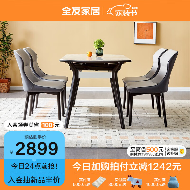 全友家居 现代轻奢岩板餐桌椅餐厅家具可方可圆伸缩折叠餐桌DW1059价格:4141.43元!