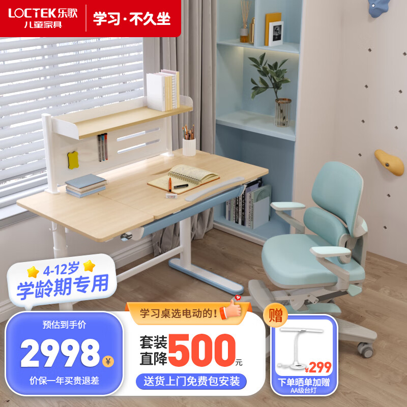 乐歌(Loctek)电动升降儿童学习桌书桌幼儿园中小学生写字桌1.1米EC2蓝+A31蓝价格:2847.00元!