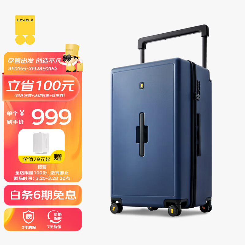 地平线8号(LEVEL8)行李箱男女大容量密码拉杆箱28英寸宽拉杆大旅行家PC箱 蓝色价格:1099.00元!