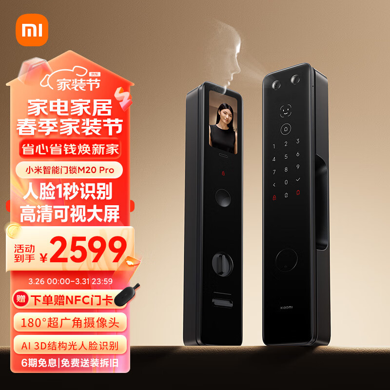 小米智能门锁M20Pro 3D人脸识别 可视猫眼大屏指纹锁电子锁密码锁价格:2599.00元!