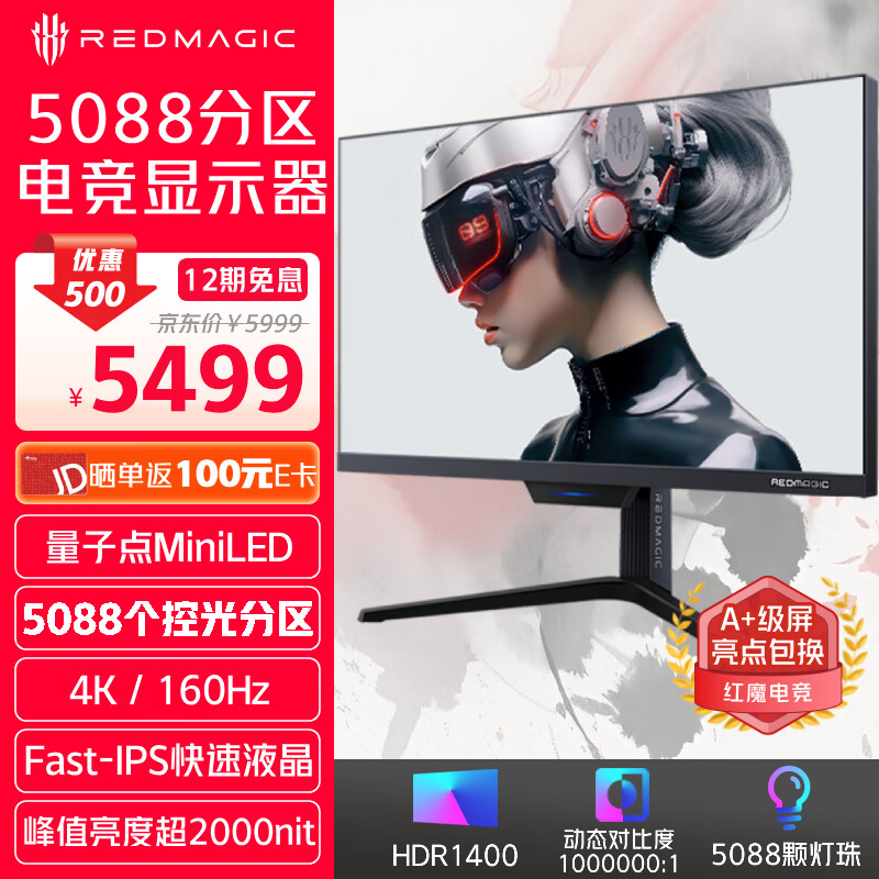 努比亚(nubia) 红魔电竞显示器GM001S 27英寸 4K 160Hz Mini LED 5088分区 高清液晶价格:5999.00元!