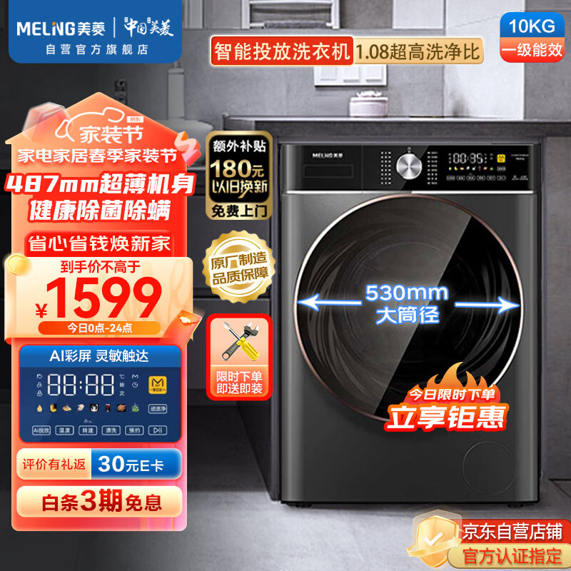 美菱(MELING)10公斤【超薄】滚筒全自动变频洗衣机巴氏除菌高温除螨洗一级能效 G100M14559BCZX价格:1599.00元!