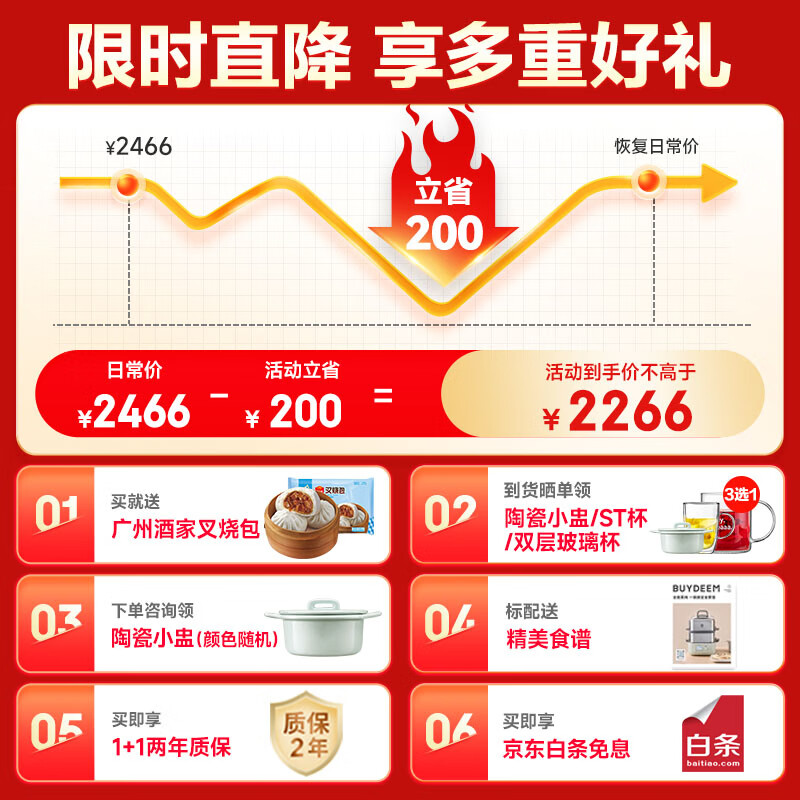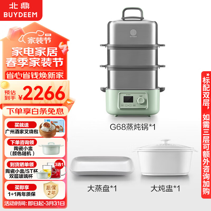 北鼎(Buydeem) 蒸炖锅家用电蒸锅全自动预约多用途锅【蒸炖套餐】G68双层14L+大炖盅+蒸盘价格:2266.00元!
