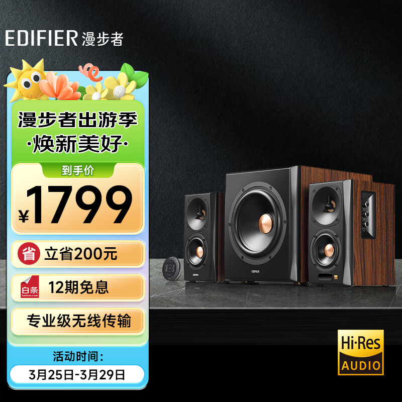 漫步者(EDIFIER)S301 Hi-Res 无线低音炮 全功能HIFI有源2.1音箱 音响 电脑音箱 电视音响价格:1799.00元!
