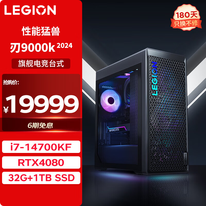 联想(Lenovo)拯救者刃9000K 2024游戏电竞电脑主机(酷睿14代i7-14700KF RTX4080 16G显卡 32G DDR5 1TB SSD)价格:19999.00元!