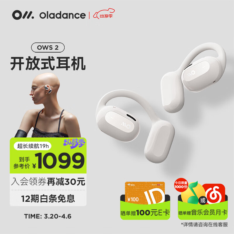 Oladance OWS2全开放式耳机适用苹果华为无线蓝牙不入耳防漏音通话清晰超长续航 白昼拂晓价格:1099.00元!