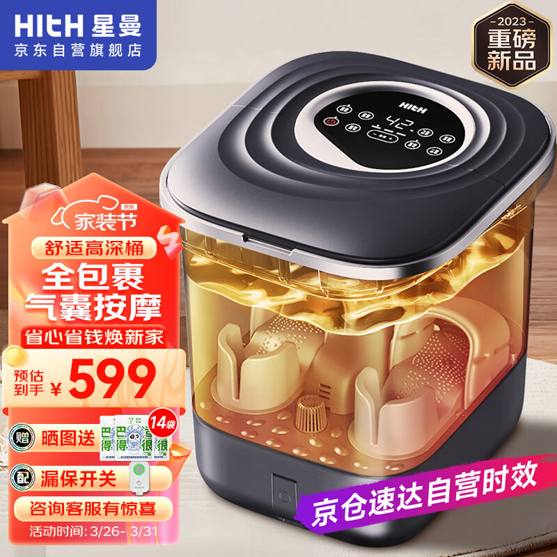 HITH泡脚桶 全包裹气囊按摩足浴盆 智能全自动恒温加热高深桶足浴泡脚盆 节日礼物送父母 YMZ-W5价格:779.00元!