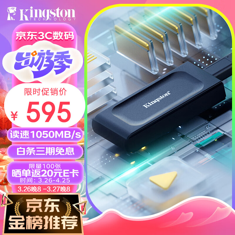 金士顿(Kingston)1TB USB3.2 Gen 2 移动固态硬盘(PSSD)XS1000 传输速度1050MB/s 手机直连 轻巧时尚价格:595.00元!