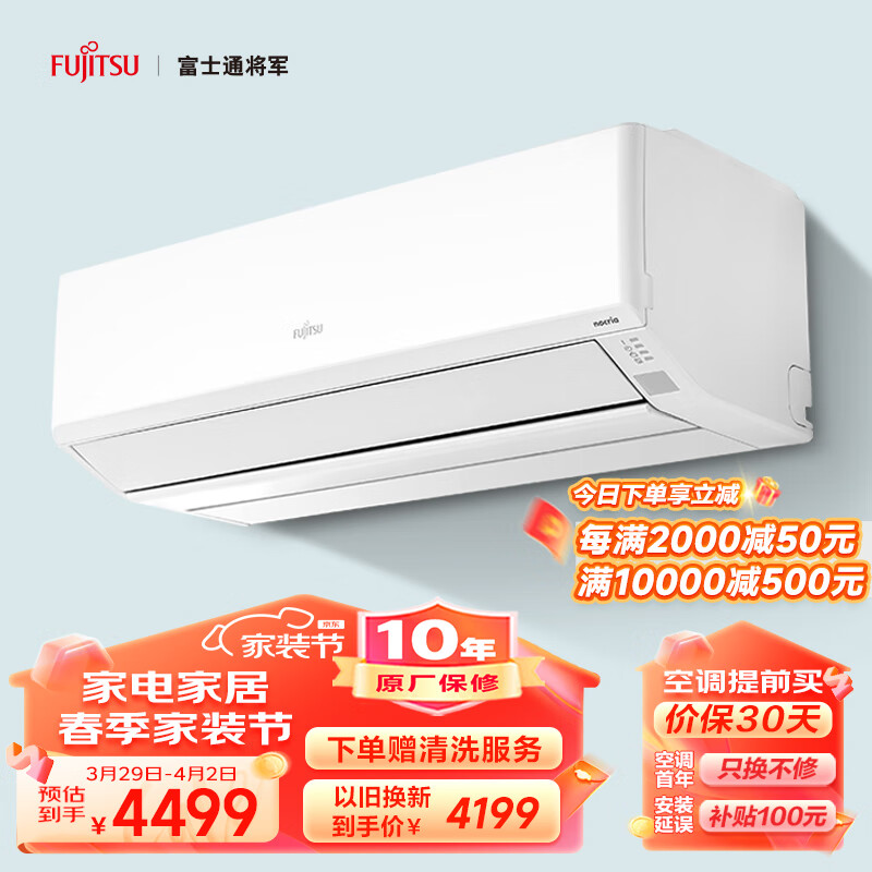 富士通 15-21㎡适用 新2级能效 1.5匹 诺可力T空调 以旧换新 变频空调 ASQG12KTCA (KFR-35GW/Bpkta)价格:4599.00元!