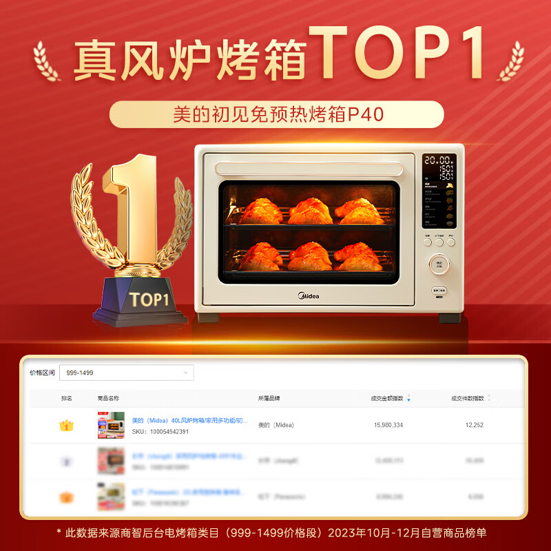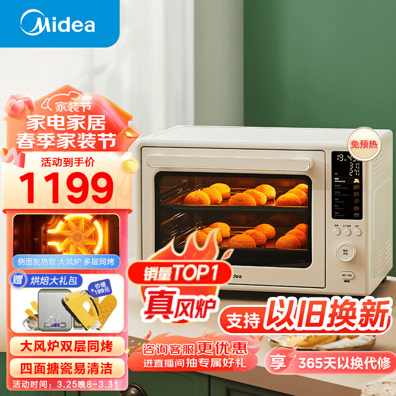 美的(Midea)40L风炉烤箱/家用多功能/初见P40石墨烯免预热电烤箱 双层同烤/彩屏屏显/PID3.0精准控温【仓库2】价格:1199.00元!