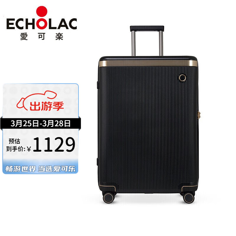 爱可乐(Echolac)明星同款 行李箱大容量拉杆箱万向轮旅行箱王朝PC142黑色24吋价格:1289.00元!