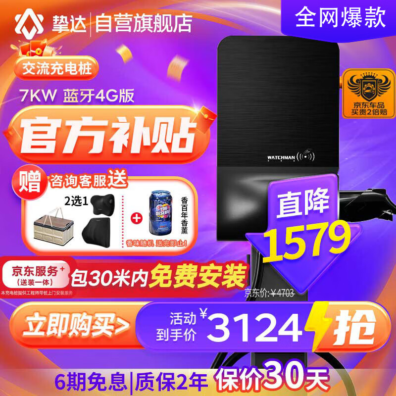 挚达7kw家用充电桩新能源电动汽车充电器枪比亚迪极氪吉利适配特斯拉小米(送装一体)30米内免费安装价格:3124.00元!