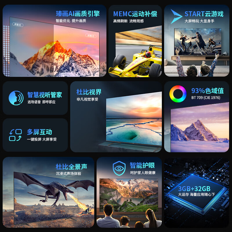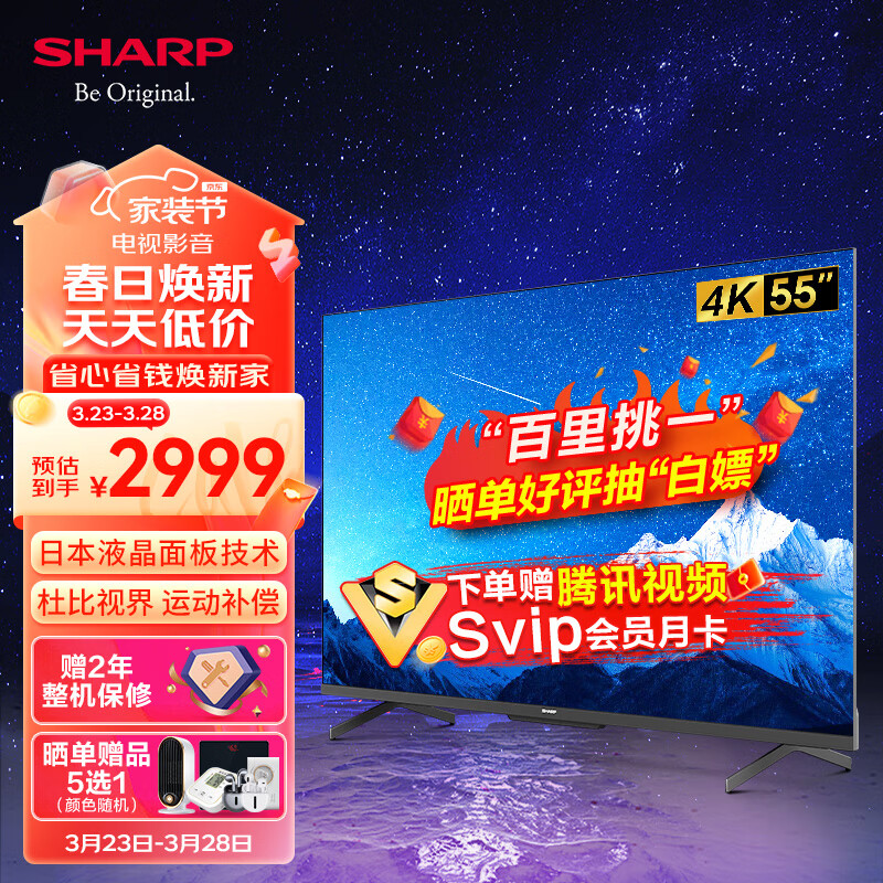 SHARP夏普电视4T-C55FL1A 55英寸MEMC运动补偿智能护眼远场语音HDR10 4K超高清 3+32G 云游戏 平板电视价格:2899.00元!
