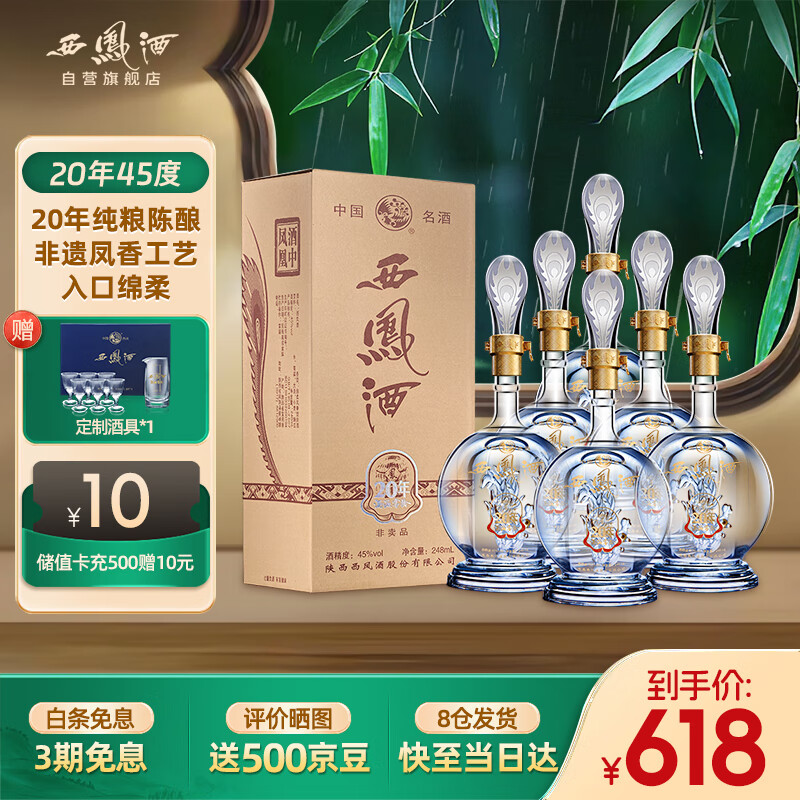 西凤酒 20年45度品鉴陕西纯粮食凤香型白酒海窖龄宴请送礼盒装248mL*6价格:468.00元!