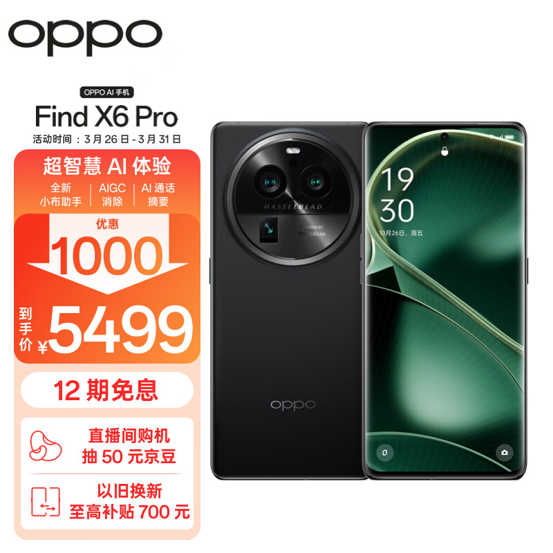 OPPO Find X6 Pro 16GB+256GB 云墨黑 超光影三主摄 哈苏影像 100W闪充 第二代骁龙8 5G 拍照 AI手机价格:6499.00元!