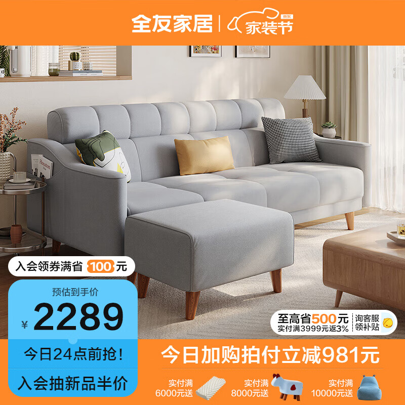 全友家居 北欧简约科技布艺沙发客厅三人位小户型可折叠沙发床102265价格:3270.00元!