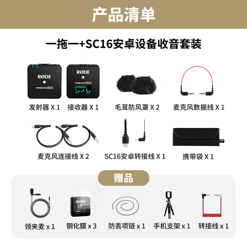 RODE罗德Wireless GO II Single无线麦克风一拖一直播录音VLOG相机手机专业收音话筒+(SC16安卓套装)价格:1885.00元!