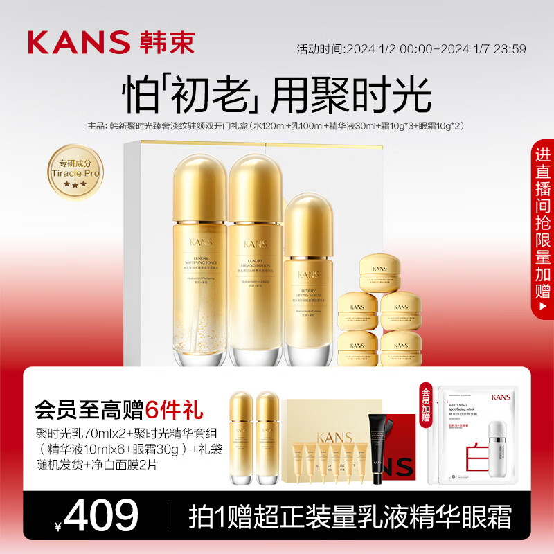 韩束聚时光鎏金塑颜8件套礼盒 淡纹抗皱护肤品套装礼物送女生价格:409.00元!