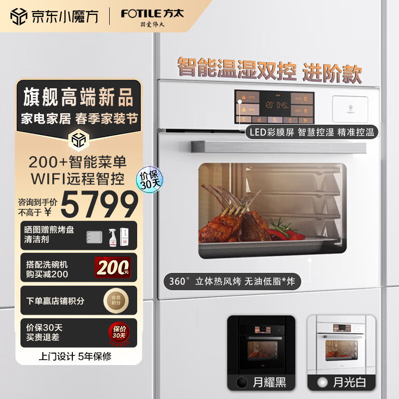 方太(FOTILE)彩膜屏款蒸烤箱一体机 月光白 嵌入式家用 智能蒸烤炖炸四合一 手机智控55L大容量蒸箱烤箱EF1.i-W价格:5799.00元!