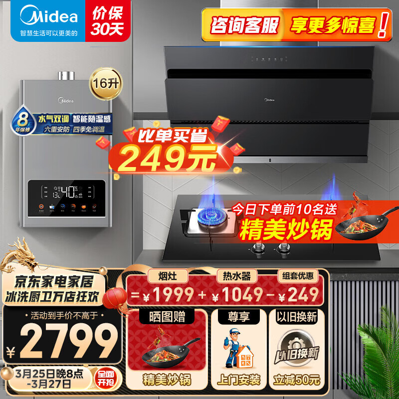 美的(Midea)侧吸抽油烟机灶具烟灶多件套装燃气热水器家用烟灶燃热厨房三件套JN205+Q217B+16TC5S天然气价格:2999.00元!