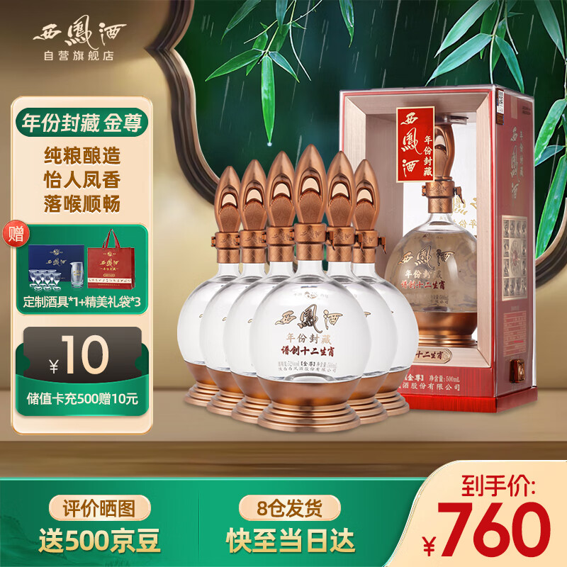 西凤酒 年份封藏52度金尊陕西纯粮食凤香型白酒水宴请送礼盒装500mL*6价格:760.00元!