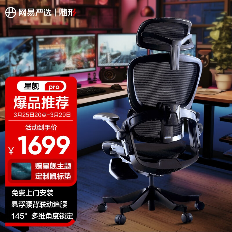 网易严选星舰pro有搁脚 人体工学电脑椅办公椅电竞老板会议学习座椅凳子价格:2099.00元!