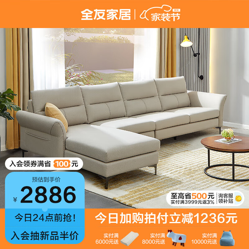 全友家居 现代简约功能科技布艺可拆洗储物转角贵妃沙发客厅102679价格:4122.86元!
