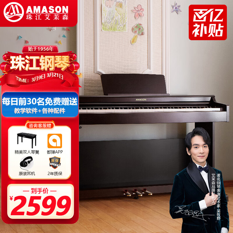 艾茉森(Amason)珠江钢琴 考级电钢琴88键重锤数码电子钢琴专业成人儿童V03S价格:2598.90元!