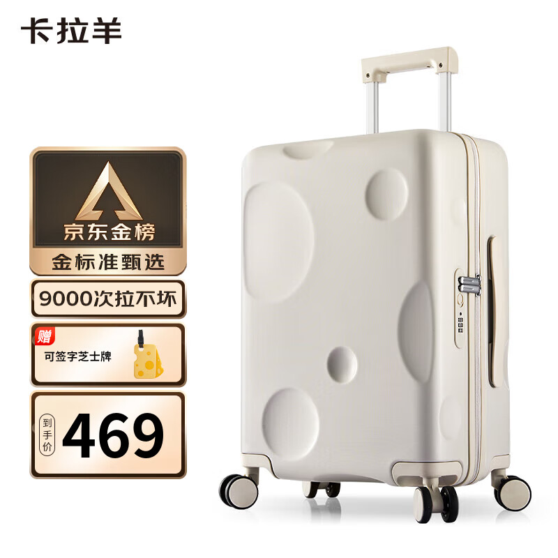 卡拉羊芝士箱防刮纯PC行李箱24英寸大容量女拉杆箱男旅行箱8109燕麦灰价格:569.00元!