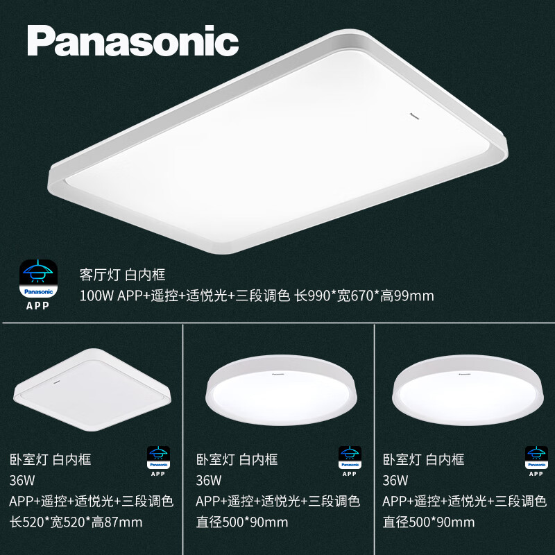 松下(Panasonic)吸顶灯app智能客厅灯现代简约卧室灯LED吸顶灯 灯具套餐A价格:2399.00元!