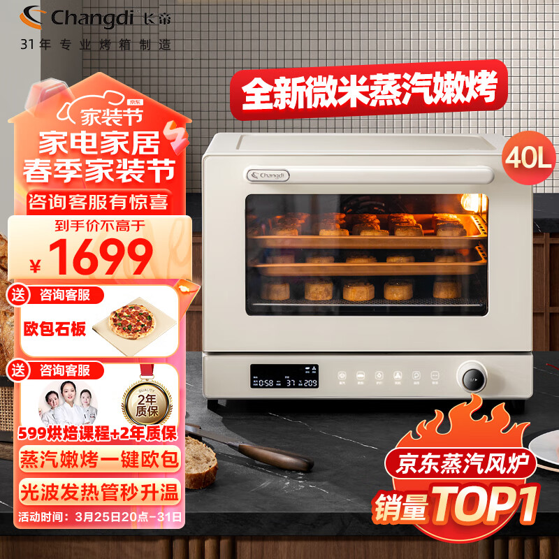 长帝(changdi)家用风炉电烤箱 40升多功能风炉平炉一体机 蒸汽嫩烤 多层同烤 一键欧包功能 S1蒸汽风炉烤箱价格:1699.00元!