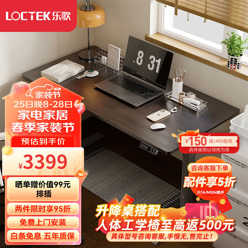 乐歌电动升降桌电脑桌站立办公学习桌 E6/1.6m 实木黑胡桃木色套装价格:3399.00元!