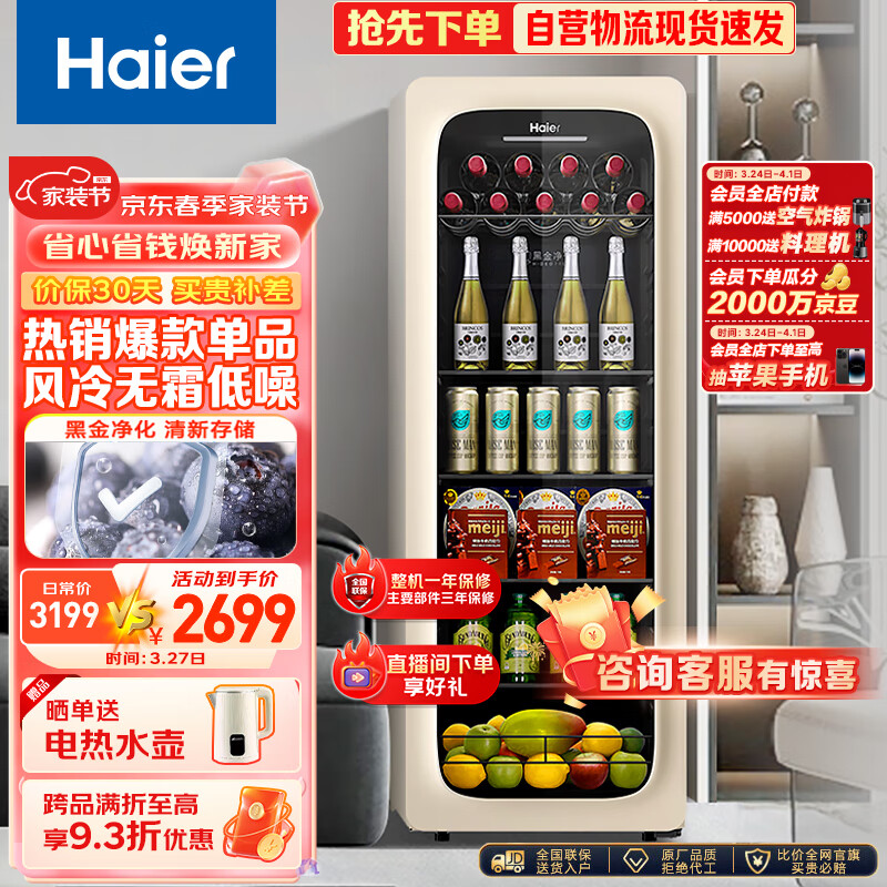 海尔(Haier)150升家用客厅办公室冷藏柜暖藏冰吧元气吧 茶叶饮料水果蔬菜保鲜柜小型冰箱象牙米LC-150WLH9EY1价格:2899.00元!