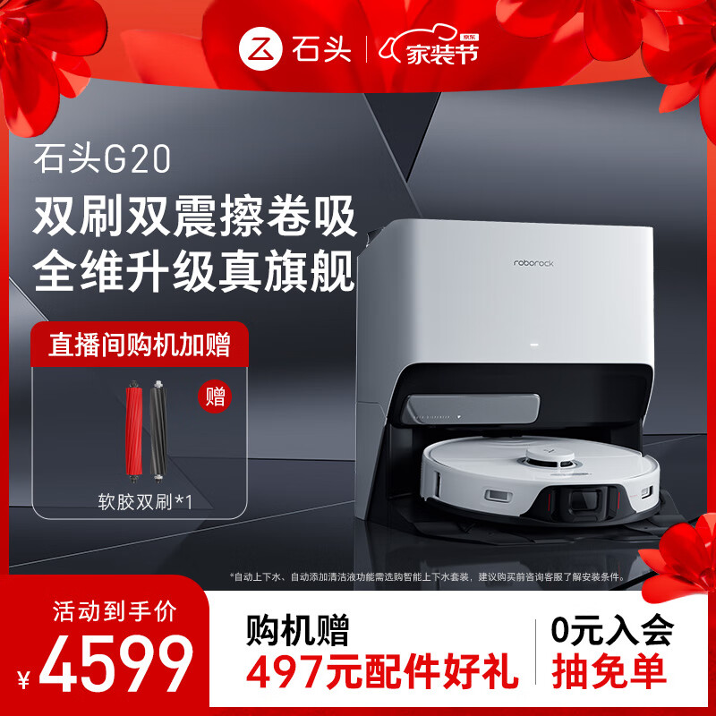 石头(roborock)G20 扫地机器人上下水新升级自动洗拖布自集尘大吸力扫拖一体机 G20水箱版价格:4599.00元!
