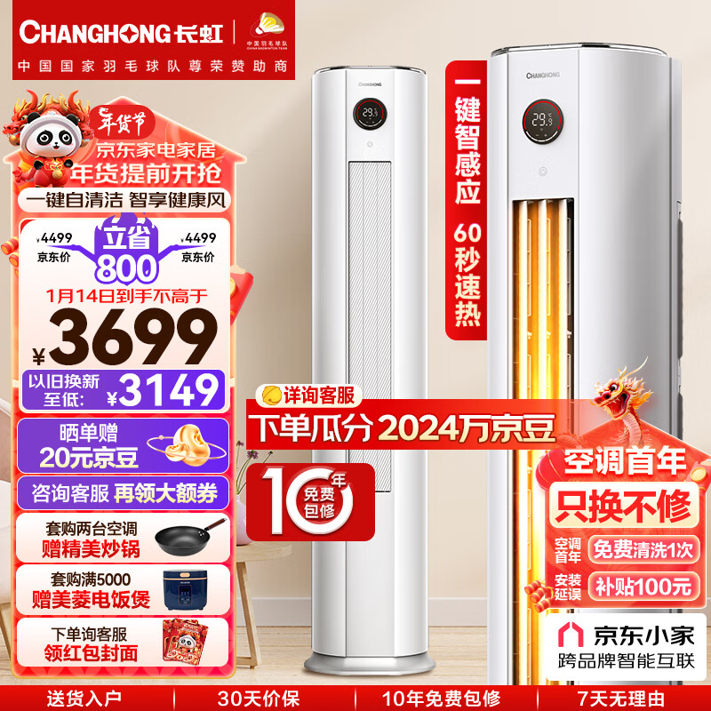 长虹(CHANGHONG)大2匹新一级能效 熊猫懒二代 变频空调 精准控温 空调立式 空调柜机 KFR-51LW/ZDTTW2+R1以旧换新价格:3699.00元!