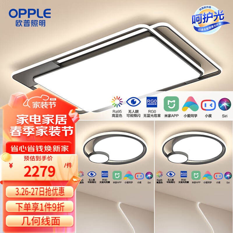 欧普(OPPLE)吸顶灯客厅大灯米家智控LED照明灯具套餐6呵护光价格:2532.00元!