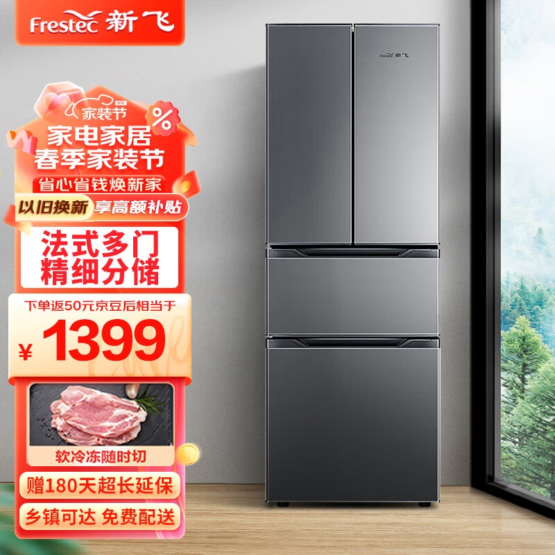 新飞(Frestec)280升法式多门冰箱 中门软冻家用电冰箱租房宿舍小巧不占地分类存储BCD-280K7CT价格:1449.00元!