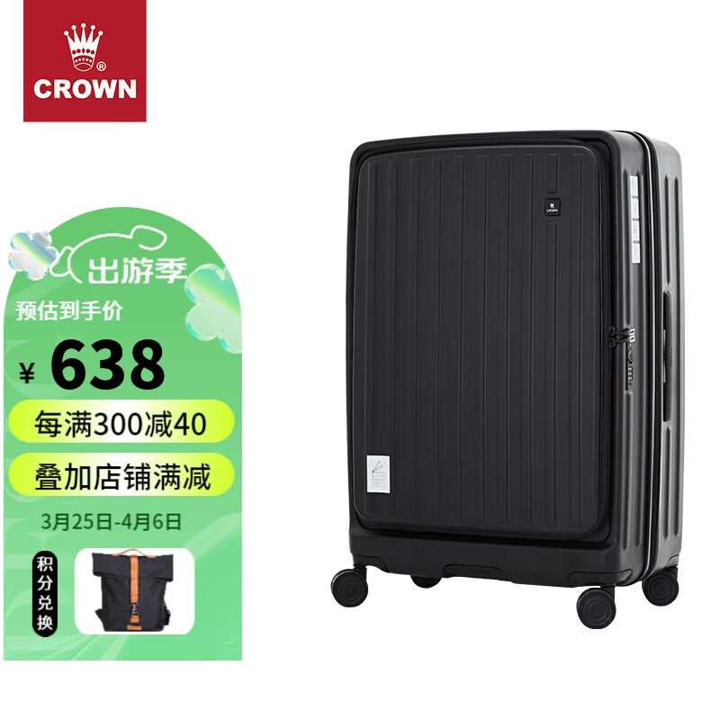 皇冠(CROWN)侧开盖行李箱时尚扩展层加大容量拉杆箱旅行箱5020-25-黑色价格:999.00元!