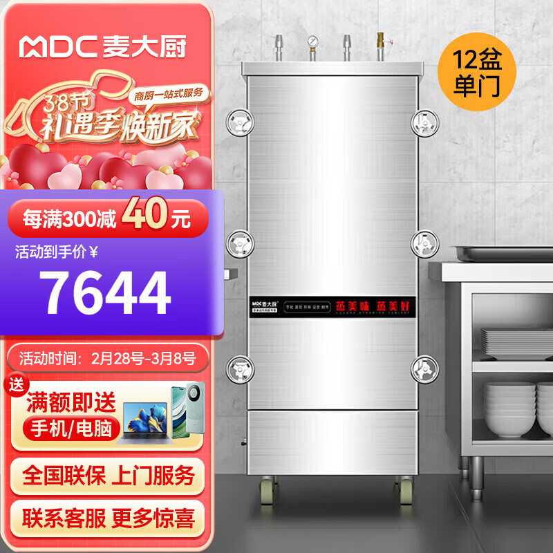 麦大厨 蒸饭柜商用蒸箱蒸包炉蒸馒头蒸饭车食堂酒店饭店厨房加厚发泡12盘燃气高原蒸柜MDC-DMD-GYRX-12价格:8804.00元!