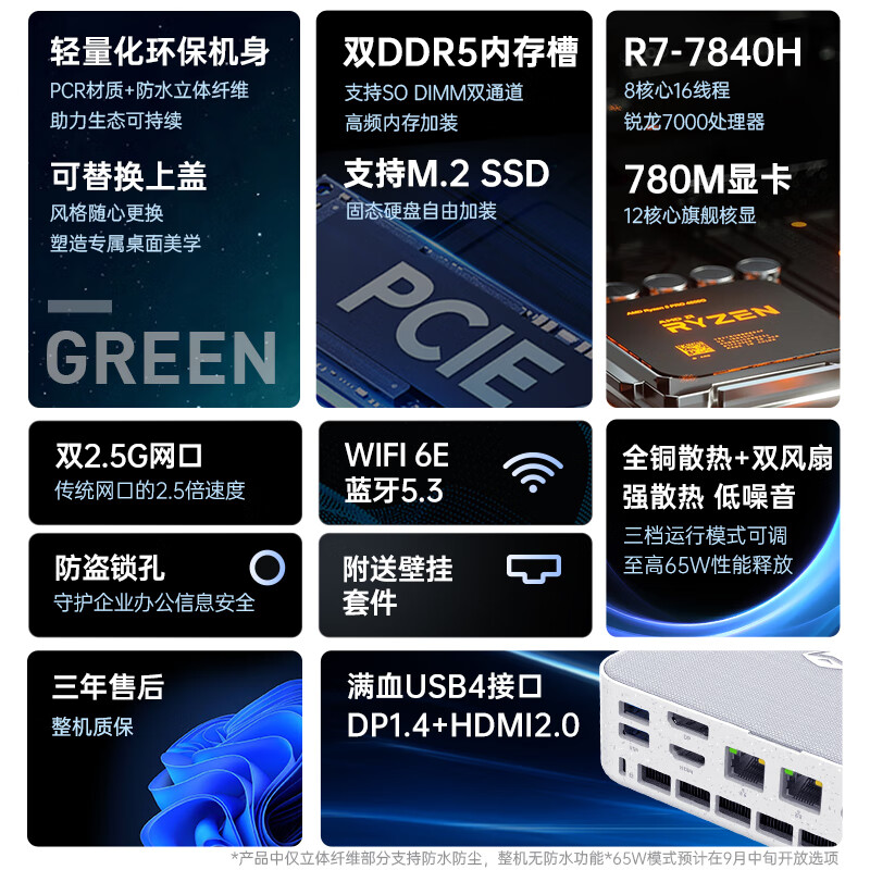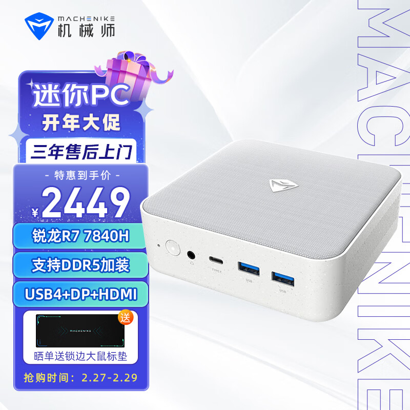 机械师(MACHENIKE)创物者Mini AMD高性能办公游戏电脑台式迷你口袋主机准系统(R7-7840H无内存硬盘WIFI6)价格:2449.00元!