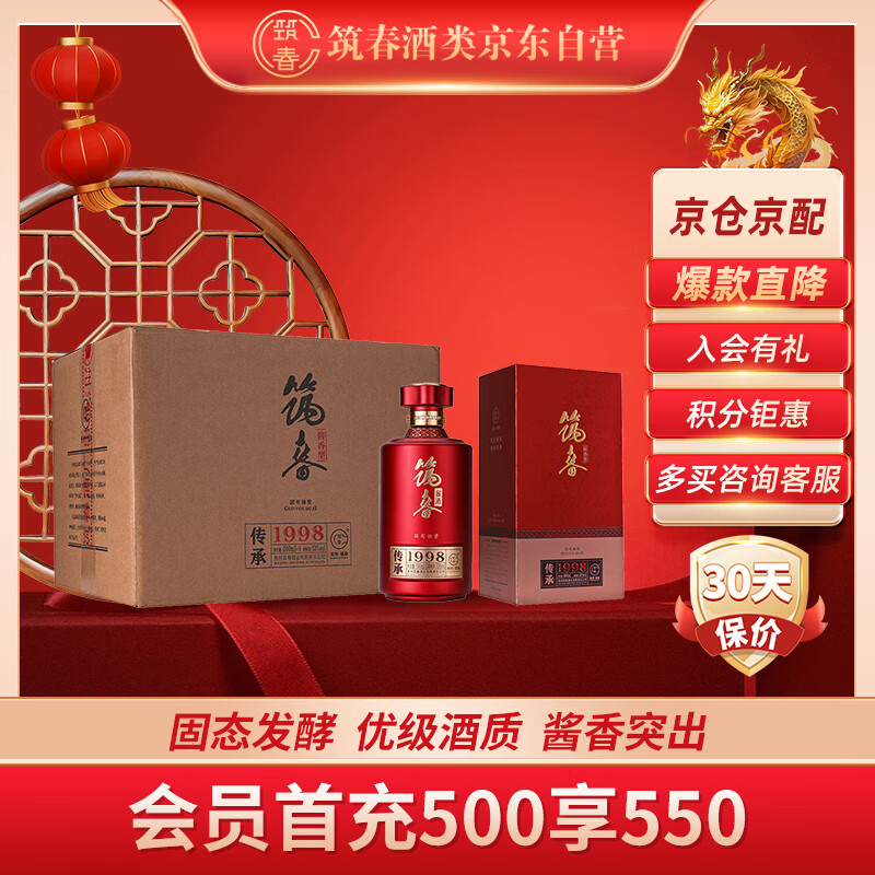 筑春 传承1998 酱香型白酒 53度 500ml*6瓶 整箱装 送礼高档价格:2839.00元!