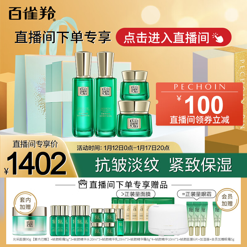 百雀羚(PECHOIN)护肤套装帧颜长相思3+2(水乳霜眼霜面膜)淡纹修护新年礼物价格:1502.00元!
