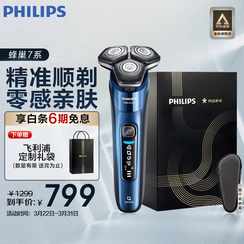 飞利浦(PHILIPS)电动剃须刀蜂巢7系 SkinIQ高端系列肌能感应护肤级刮胡刀 生日礼物 送男友 送老公价格:799.00元!