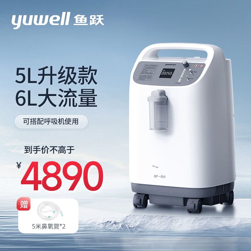 鱼跃(yuwell)6L升医用制氧机家用高氧浓度专业款吸氧机 制氧带雾化一体机助呼吸家用老人孕妇氧气机8F-6W价格:5190.00元!