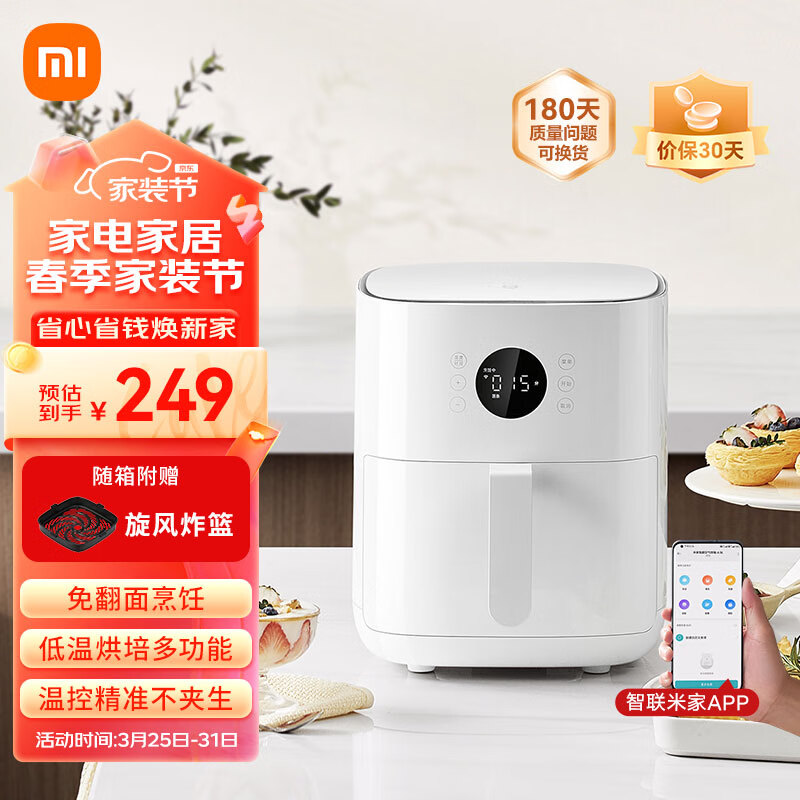 米家小米空气炸锅烤箱一体机电炸锅 全自动免翻面 食品级不粘涂层 烤红薯薯条 多功能智能互联4.5升价格:243.20元!