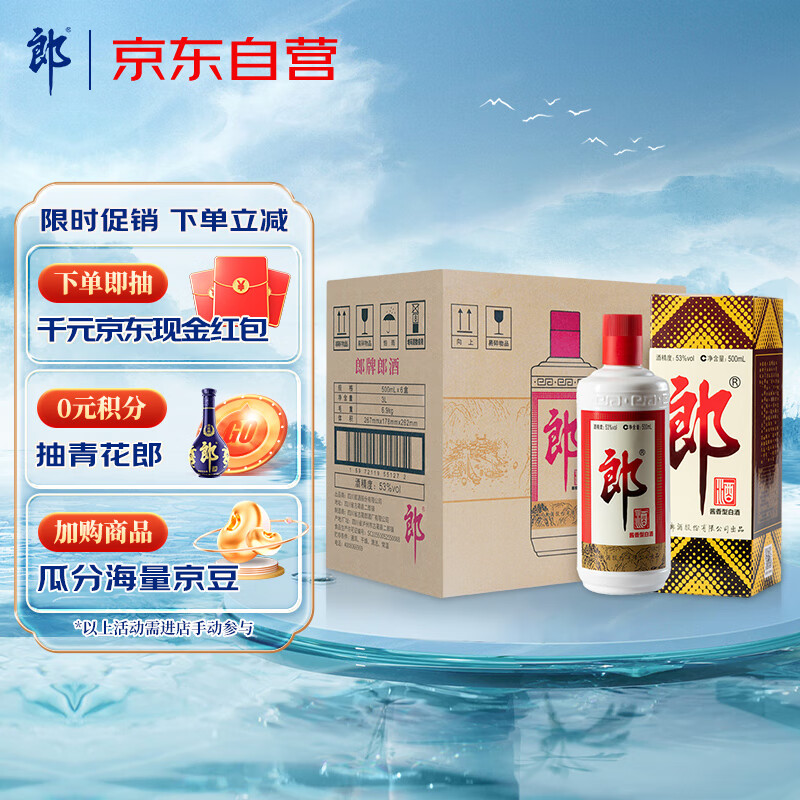 郎酒 郎牌郎酒 酱香型白酒 53度 500ml*6瓶 整箱装价格:1580.00元!