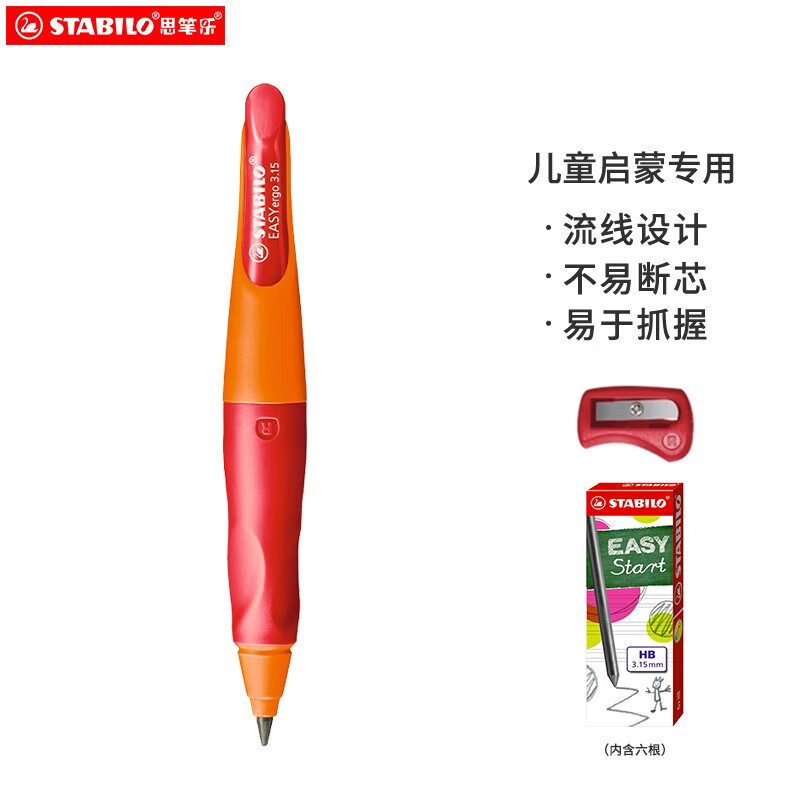思笔乐(STABILO)自动铅笔 3.15mm胖胖铅 幼儿园小学生文具 粗铅不断芯粗笔身好抓握 橙色B-46876-5价格:75.10元!