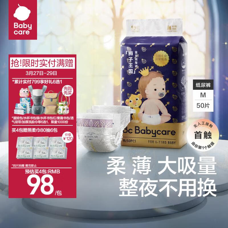 babycare皇室狮子王国弱酸纸尿裤M50片(6-11kg)中号婴儿尿不湿弱酸亲肤价格:150.00元!