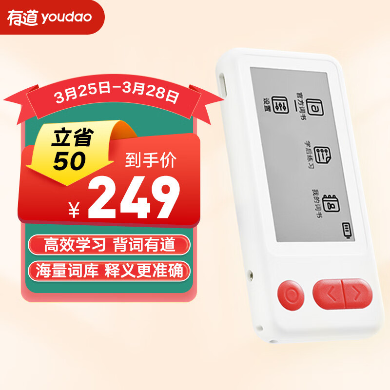 有道网易有道电子单词卡M6 背单词神器 墨水屏电子词典单词记忆神器 高考学习英语四六级考研神器价格:249.00元!