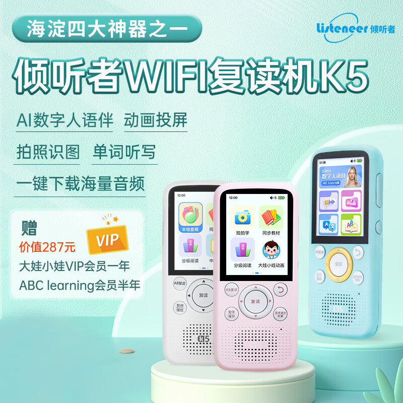 listeneer复读机倾听者K5听力宝智能听力学习机古诗词英语学习考研神器 经典白64G价格:738.00元!